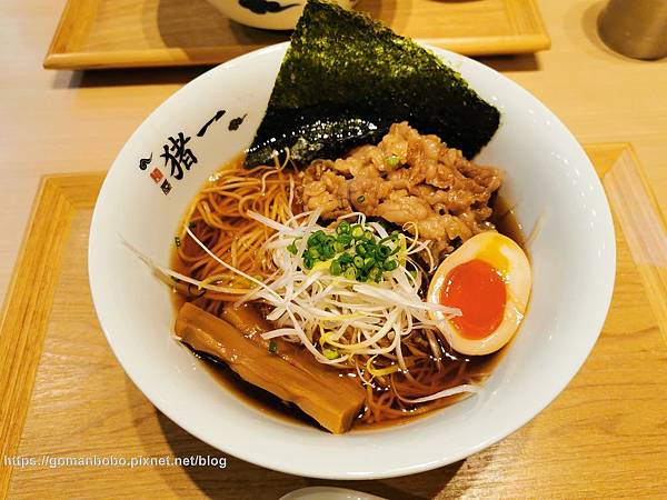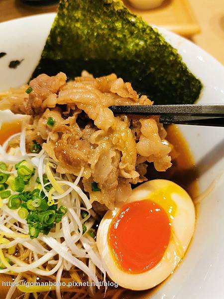 和牛肉片口感軟嫩,肉汁豐富,非常適合搭配黑醬油湯頭,感覺像在吃壽喜鍋的涮肉片。不得不提的是這片溏心蛋,蛋黃濃稠香甜,蛋白軟嫩可口,非常好吃。